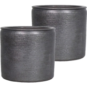 2 stuks bloempot/plantenpot van keramiek in het industrieel zwart. Bloempotten met een mooi zwart relief afwerking aan de buitenkant. Gewicht: 2.78 kilo. Het keramiek heeft een coating zodat het…