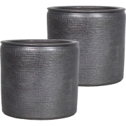 Floran Plantenpot - 2x - industrieel zwart - keramiek - 24 x 22 cm - Binnen gebruik -