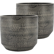 Bloempot/plantenpot Loule - 2x - relief - antraciet - voor kamerplant - D19 x H17 cm -