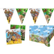 Kinderverjaardag/kinderfeestje tafeldek set tafelkleed/servetten/vlaggetjes jungle thema -