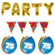Verjaardag feestversiering 75 jaar PARTY letters en 16x ballonnen met 2x plastic vlaggetjes -