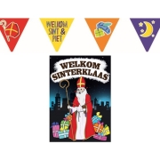 Sinterklaas versiering feestpakket inclusief 2x stuks papieren vlaggenlijnen 6 meter en A1 deurposter
