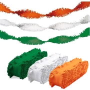 Feest versieringen combinatie set slingers oranje/wit/groen van beide 24 meter lang crepe papier. Breedte 15 cm. Brandvertragend. Feestartikelen voor vele gelegenheden: verjaardag, themafeest,…