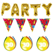 Verjaardag feestversiering 30 jaar PARTY letters en 16x ballonnen met 2x plastic vlaggetjes -