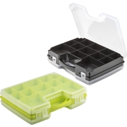 Forte Plastics opberg vakjes doos/sorteerbox set van 4x stuks. 13-vaks kunststof opbergboxen. Formaat: 27 x 20 x 3 cm. In de kleuren zwart en groen. 2x stuks per kleur. Deze handige opberg vakjes…