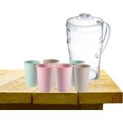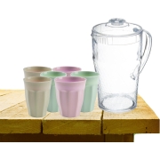 Water/limonade schenkkan 2 liter met 12x kunststof glazen voordeelset -