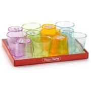 Forte Plastics water/sapkan 2 liter kunststof met 12x gekleurde glazen 250 ML