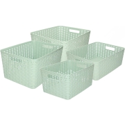 Set van 4x stuks opbergboxen/opbergmandjes rotan mintgroen kunststof. In 4x verschillende formaten 10/12/18/28 liter inhoud. Door het aantrekkelijke geweven design en de luxe uitstraling van de…