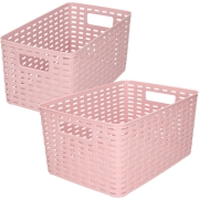 Set van 8x stuks opbergboxen/opbergmandjes rotan oud roze kunststof. In 2x verschillende formaten 5x stuks van 5 liter en 3x stuks van 10 liter inhoud. Door het aantrekkelijke geweven design en de…