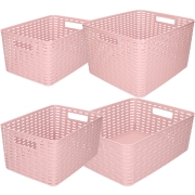Set van 4x stuks opbergboxen/opbergmandjes rotan oud roze kunststof. In 4x verschillende formaten 10/12/18/28 liter inhoud. Door het aantrekkelijke geweven design en de luxe uitstraling van de…