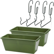 2x stuks reling Plantenbakken donkergroen rechthoekig 40 x 18 x 15 cm met setje kunststof beugels. Materiaal: polypropyleen (plastic/kunststof). Bloembakken/plantenbakkenken/plantenpotten voor…