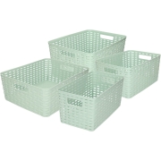 Set van 4x stuks opbergboxen/opbergmandjes rotan mintgroen kunststof. In 4x verschillende formaten 5/10/12/18 liter inhoud. Door het aantrekkelijke geweven design en de luxe uitstraling van de…