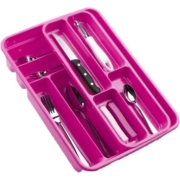 Roze bestekbak/bestekhouders met 2 lagen. Deze bestek bak bestaat uit 2 lagen, de onderste is voorzien van 6 vakken met daarbovenop een verschuifbaar bakje met 4 extra vakken. Afmetingen: ca. L40…