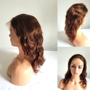 Frazimashop- Braziliaanse Remy pruik -16 inch golf haren chocolade kleur 4 -Pre geplukt pruiken - echt haar - 13x6 lace frontal wig