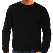 Sweater/sweatshirt trui - zwart - ronde hals - raglan mouwen - heren M (EU 50) -