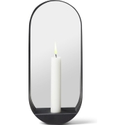 GLIM Round is een langwerpige zwart metalen spiegel met kaarsenhouder, ontworpen door Böttcher…