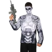 "Robot t-shirt voor mannen - Dit t-shirt voor mannen heeft lange mouwen en is in het grijs bedrukt als een robot. Het is bedrukt aan beide kanten. Verkleed je als een levende machine met dit robot t-…