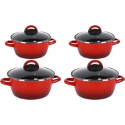 Kookpannen set van 4x stuks rood 5 liter en 8 liter Cuenca. Afmetingen ca: ca. D20 x H15 cm. (5 liter) en ca. D24 x H18 cm. (8 liter). Reinigen: Vaatwasmachine bestendig. Geschikt voor…