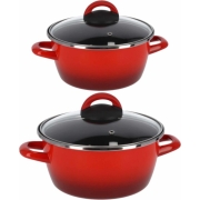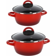 Kookpannen set van 4x stuks rood 3 liter en 5 liter Cuenca. Afmetingen ca: ca. D25 x H14 cm. (3 liter) en ca. D25 x H15 cm. (5 liter). Reinigen: Vaatwasmachine bestendig. Geschikt voor…