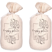 Deurstopper - 2x - 1 kilo - beige - canvas - Happy place - D13 x H26 -