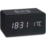Tafelklok/wekker/alarmklok en telefoonoplader, model Josimity, MDF hout in de kleur zwart. Deze klok/wekker heeft een formaat van circa 15 x 7 x 7 cm en is gemaakt van MDF/kunststof. Dit modern…