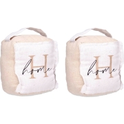 2x deurstopper van 1 kilo zwaar voor binnen- of buitendeuren in de kleur beige met daarop de tekst Home. Afmeting: 14,5 x 16 x 19 cm. Gemaakt van canvas en vulling. Super handig artikel voor elk…