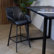 De barstoel Shannon. Met deze barstoel zit je altijd comfortabel. De rug- en armleuningen van de barstoel zijn bekleed met de opties stof, velvet en kunstleer. De poot is gemaakt van staal met zwarte…