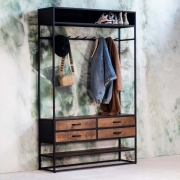 Kapstok Kast Lino Bruin Met Rek en Lades De Kapstok Kast Lino in bruin is een prachtige toevoeging aan je interieur. Deze industriële kast combineert de robuustheid van metaal met de warme…