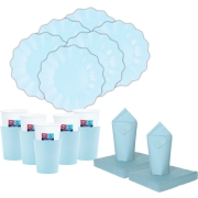 Givi Italia feest/verjaardag gebaksbordjes en bekertjes set New Wave, 32-delig in de kleur babyblauw. Gemaakt van stevig karton dus een gemakkelijk alternatief voor plastic bordjes, in de kleur…