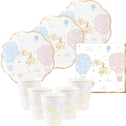 Givi Italia gender reveal kinder/feest servies set van papier/karton voor 16-personen. Deze schattige gender reveal thema set bestaat uit gevormde en bestempelde bordjes, servetten en bekers, de…