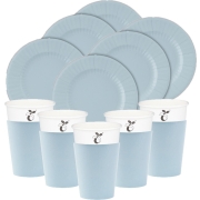 Givi Italia feest/verjaardag BBQ bordjes en bekertjes set, 32-delig in het lichtblauw. Gemaakt van stevig karton dus een gemakkelijk alternatief voor plastic bordjes, in de kleur lichtblauw. Maak…