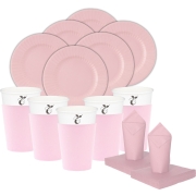 Feest BBQ bordjes/bekertjes/servetten set - 16 personen - lichtroze - papier/karton -