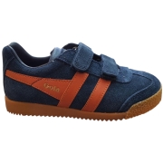 Merk: Gola model Harrier strap Soort: sneaker Sluiting: klittenbanden Materiaal: suède van buiten en microline voering Kleur: blauw met oranje Pasvorm: normaal tot breder…
