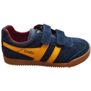 Merk: Gola model Harrier strap Soort: sneaker Sluiting: klittenbanden Materiaal: suède van buiten en microline voering Kleur: blauw met geel Pasvorm: normaal tot breder…