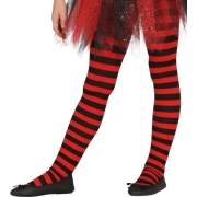 Heksen verkleedaccessoires panty maillot rood/zwart voor meisjes. Geschikt voor kinderen van 5 tot 9 jaar. Materiaal: 88% polyamide/12% elastan. Pantydikte: 15 denier…