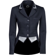 Luxe wedstrijdjasje van hoogwaardig stretch materiaal. Het jasje is uitgevoerd met een crystal knoopsluiting met daaronder een ritssluiting voor perfecte pasvorm, kraag en giletflapjes zijn voorzien…