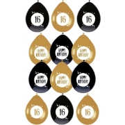 Haza - Feestartikelen verjaardag 16 jaar 36x mix ballonnen zwart/goud