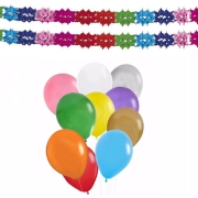Woonkamer verjaardag versiering set 2x papieren thema feestslingers van 6 meter en 100x gekleurde party ballonnen 27 cm. Gemixte kleuren feest ballonnen, gemaakt van latex. Feestartikelen voor uw…