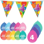 Leeftijd verjaardag thema 4 jaar pakket ballonnen/vlaggetjes -