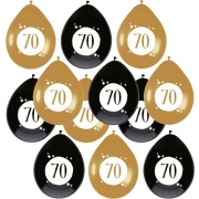 Leeftijd verjaardag thema ballonnen 70 jaar 12x stuks 30 cm. Leeftijd feestartikelen en versieringen voor de jarige. 70 jaar geworden, dat moet gevierd worden. zwart en goud kleuren assorti.…