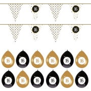 Leeftijd verjaardag 16 jaar geworden feestpakket vlaggetjes/ballonnen -