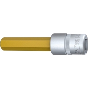 Krachtdop zeskant lang 1/2 " 19 mmSpeciaal voor wiel de- montage. Extra smalle uitvoering. Met boring voor borgpen of borgveer en gleuf voor o-ring. Duits fabricaat.  …