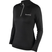 Dames shirt met lange mouwen, gemaakt van een technische stof welke is behandeld met polygiene om transpiratiegeur tegen te gaan. Het shirt heeft een fijne col met rits en een subtiele toon op toon…