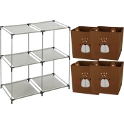 Kastmandjes/opberg mandjes - beren print - bruin - 4x stuks van 29L - In rekje van 68 x 68 cm -