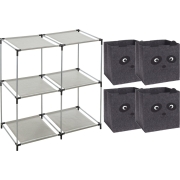 Kastmandjes/opberg mandjes - zwart - 3x stuks van 29 Liter - In rekje van 34 x 98 cm -