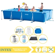 Intex Rectangular Frame Zwembad - Opzetzwembad - 450x220x84 cm - Inclusief Onderhoudspakket, Zwembadpomp, Filter, Grondzeil, Solar Mat, Trap en Voetenbad