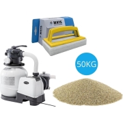 Intex - Zandfilterpomp 10500 L/u & Filterzand 50 kg & WAYS Scrubborstel