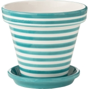Flowerpot+Plate Granada Stripes Handmade+Painted Ceramic Aqua Large…