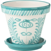 J-Line Flowerpot+Plate Granada Handmade+Painted Ceramic Aqua Large