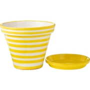 J-Line Flowerpot+Plate Granada Stripes Handmade+Painted Ceramic Yel